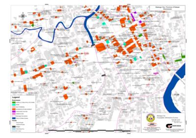 - Production of Thematic Maps. SRDP produces thematic maps based on the available GIS data, showing specific themes like elevation, building use, population density, or hazard information.